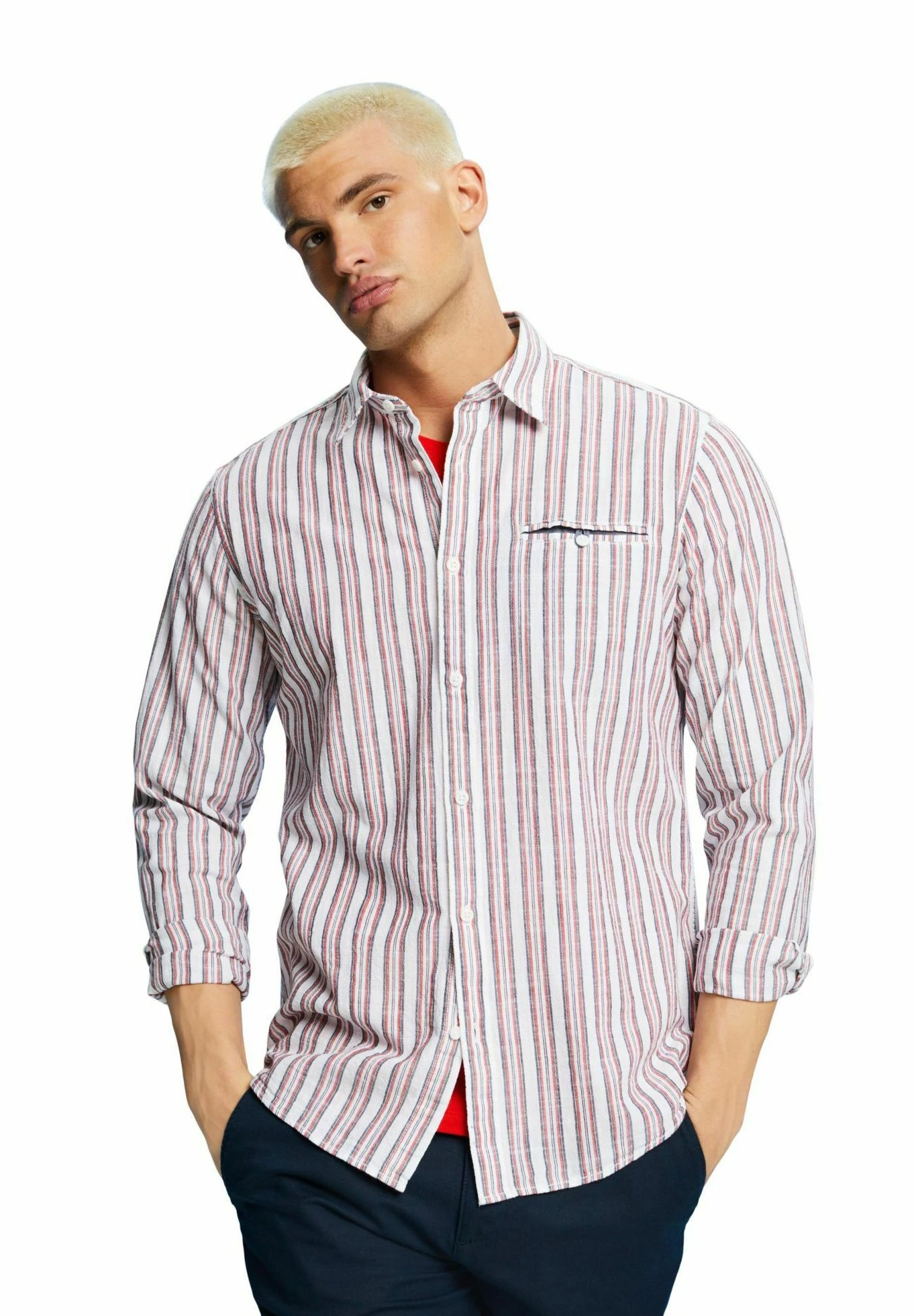Edc By Esprit Gestreiftes Aus – Overhemd – White