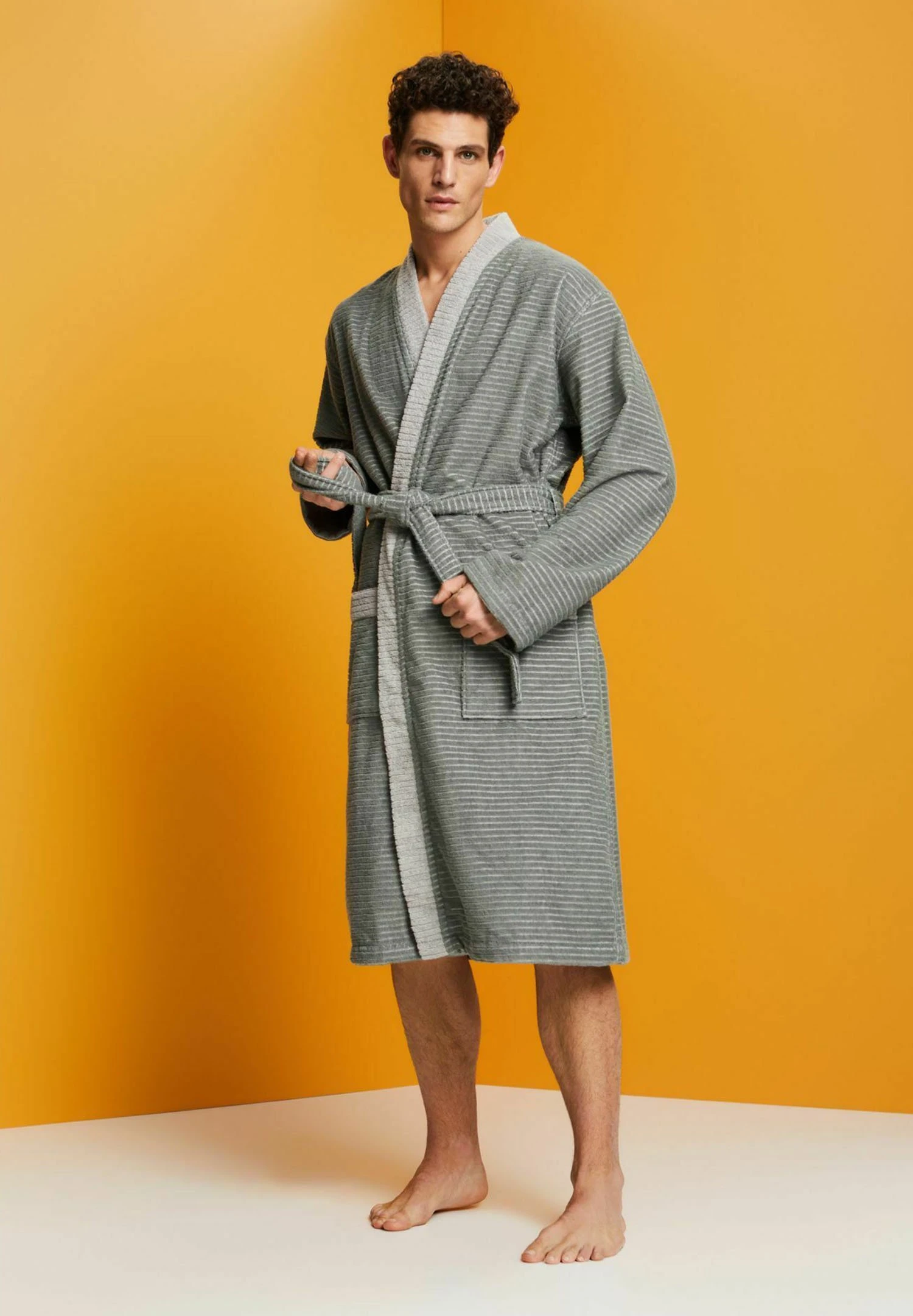 ESPRIT Mit Strukturstreifen – Badjas – Anthracite