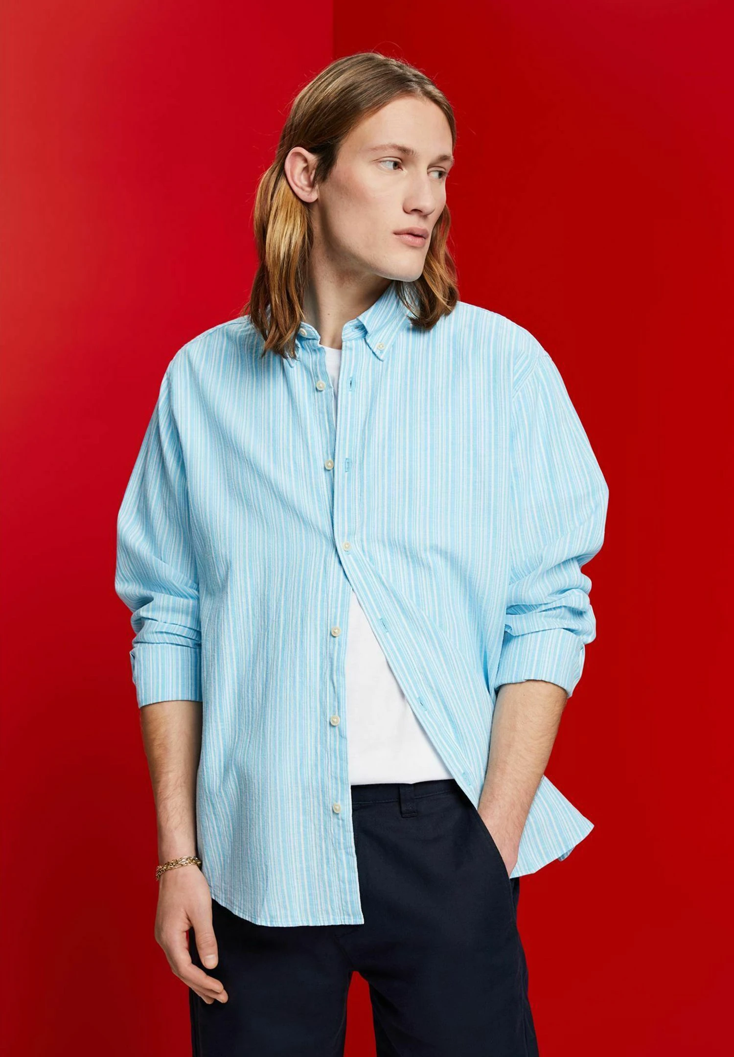 ESPRIT Streifen Mit Anteil – Overhemd – Turquoise